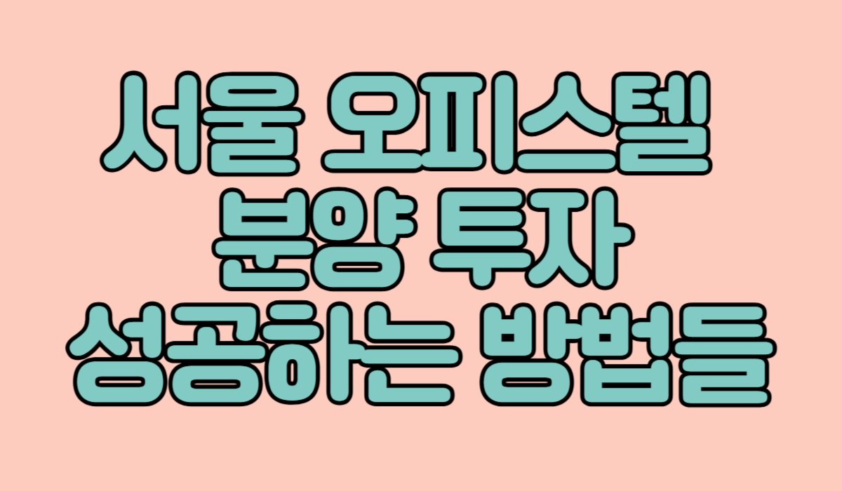 서울 오피스텔 분양 투자, 성공적으로 하는 방법 (2024년 최신 정보)